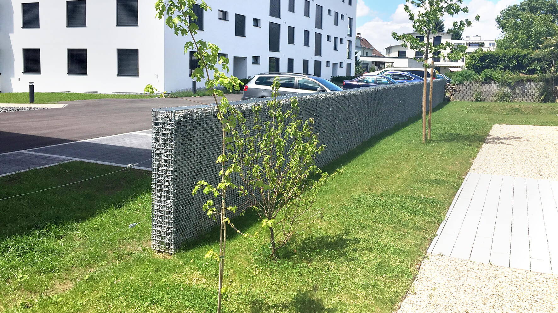 Le mur en gabions représente un ouvrage d'art permanent (horizon de planification de 100 ans).