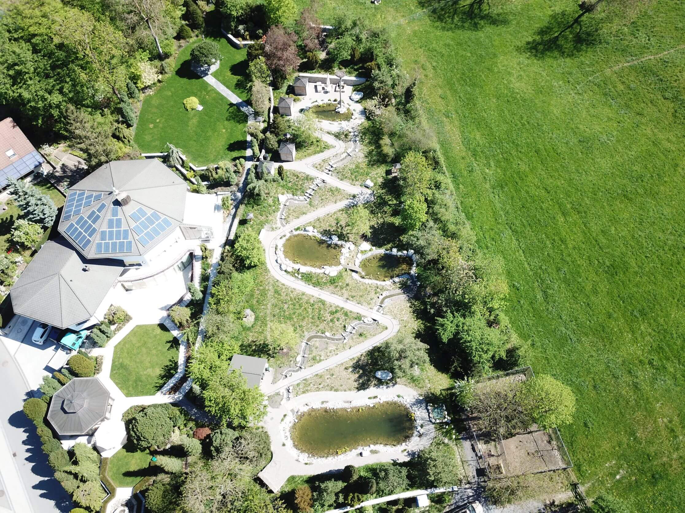 Les étangs aménagés calqués sur la nature embellissent les jardins et offrent un grand bénéfice écologique. Dans la commune liechtensteinoise de Triesen, quatre étangs ont été aménagés à différents niveaux d’un jardin privé en pente. Ils sont tous les quatre reliés à un petit ruisseau sinueux s’écoulant dans le sens de la pente. Les fuites sont la hantise des concepteurs d’étangs. Dans la plupart des cas, un biotope présentant des fuites doit être entièrement rénové. Pour éviter cela, savoir-faire et matériaux de grande qualité sont de rigueur.
