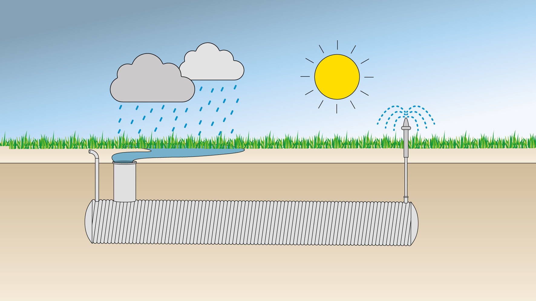 Serbatoio per acqua piovana destinato all’irrigazione, all’uso come acqua di servizio, acqua di raffreddamento o acqua antincendio