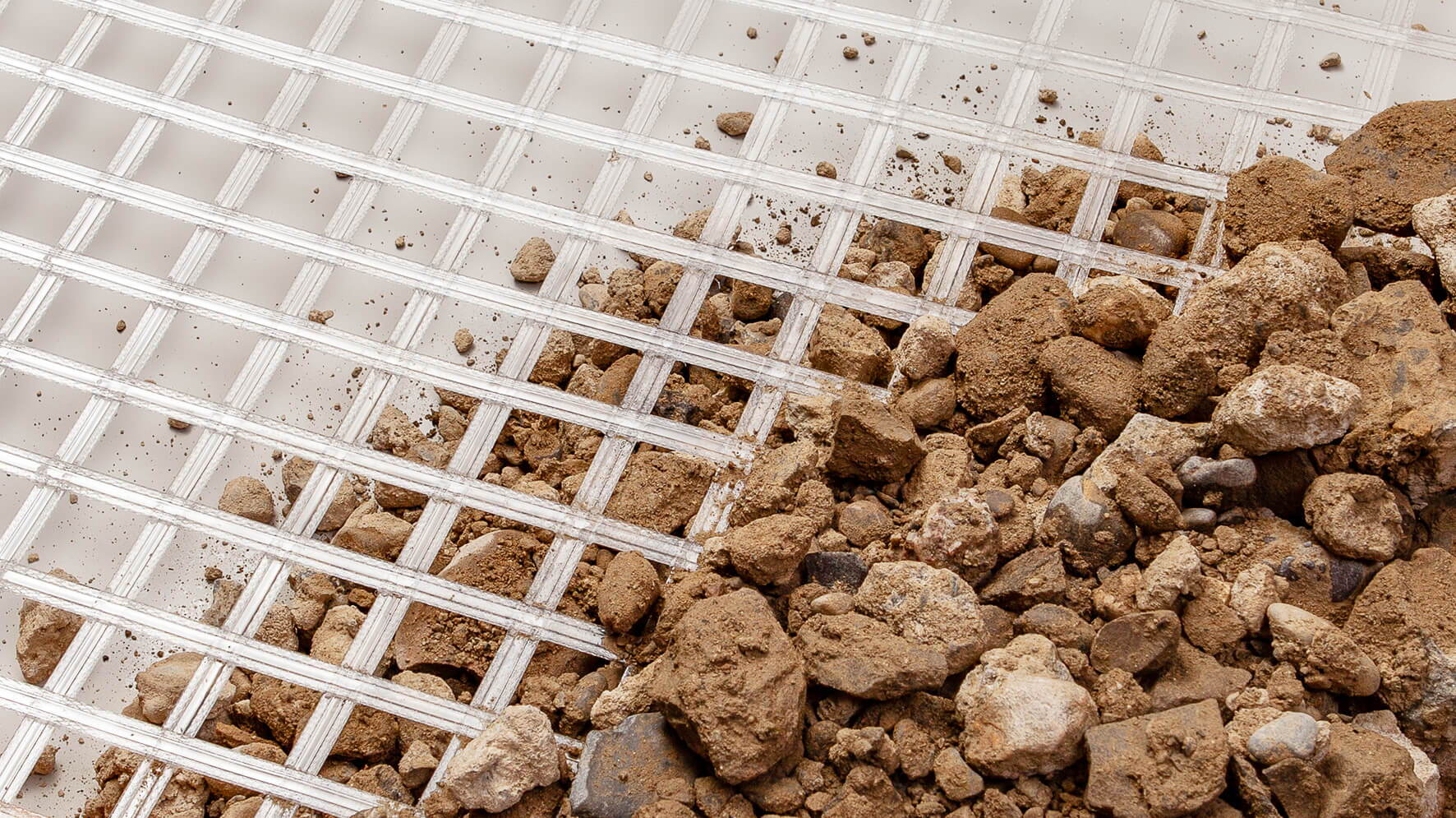 Geogriglia a nodi rigidi, biassiale. Le barre rigide e robuste delle geogriglie SYTEC GS limitano il movimento rotatorio dei grani di ghiaia attraverso l’effetto di incastro e la limitazione dei movimenti orizzontali grazie al supporto laterale.Questo meccanismo costituisce la base per sovrastrutture a bassa deformazione. I seguenti parametri del prodotto sono determinanti: