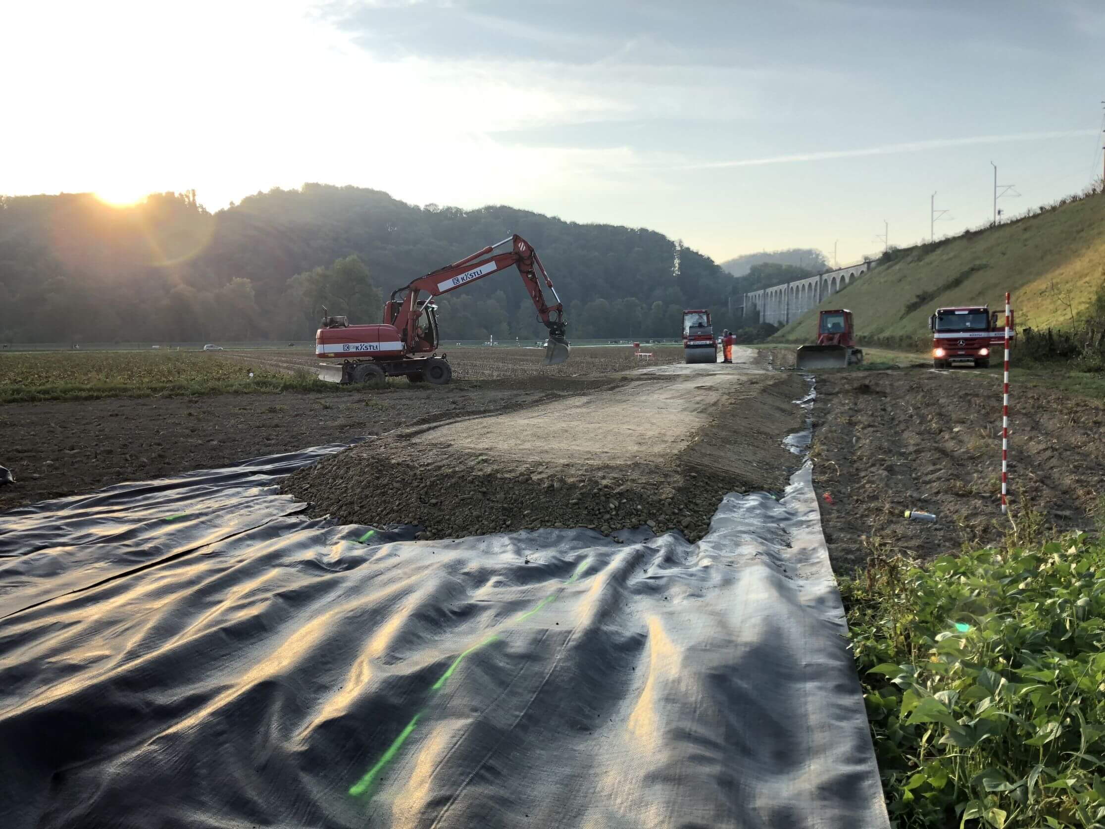 Aree di circolazione temporanea su terreno vegetale. Protezione del terreno vegetale grazie all'effetto separatore e rinforzante del geotessuto. Semplice rimozione dello strato di fondazione e recupero della ghiaia.