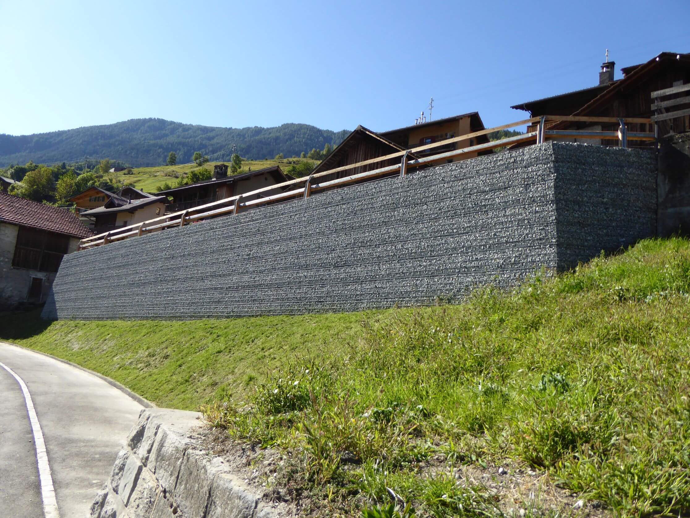 Hérémence, paesino situato sulle montagne vallesane, sembra sia rimasto incollato a un ripido pendio. Il pittoresco panorama e le storiche case di legno sono importanti per l’immagine turistica del Comune. Per conservarla, pertanto, si è molto refrattari a interventi di carattere edilizio. Il Comune aveva deciso di costruire un nuovo parcheggio su un terreno scosceso. La pendenza richiedeva tuttavia un’opera in rilevato e una struttura di sostegno. Per inserire armoniosamente entrambe nel paesaggio, le autorità comunali hanno chiesto che le caratteristiche pietre locali abitualmente utilizzate per le fondamenta delle case fossero riprese anche nella struttura di protezione. Da qui la decisione di optare per il sistema TerraStone Plus di SYTEC.